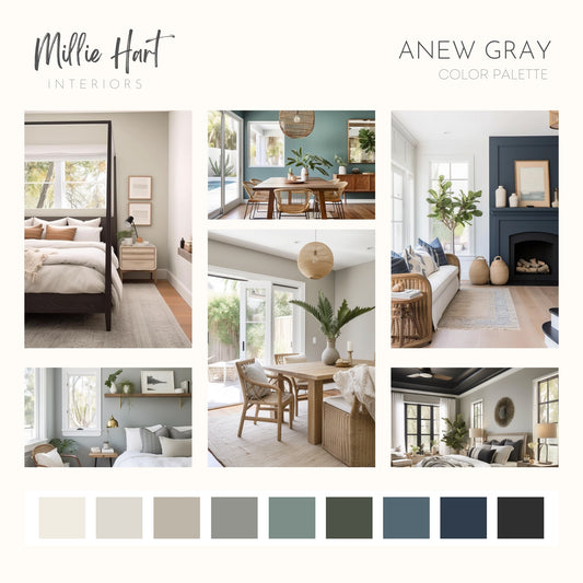 Anew Gray Sherwin Williams Paint Palette - Modern Neutral Interior Paint Colors for Home - Coordinating Interior Design Color Palette, Sherwin Williams Drift of Mist