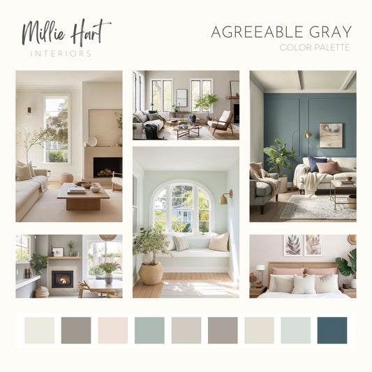Agreeable Gray Sherwin Williams Paint Palette - Modern Neutral Interior Paint Colors for Home - Coordinating Interior Design Color Palette, Sherwin Williams