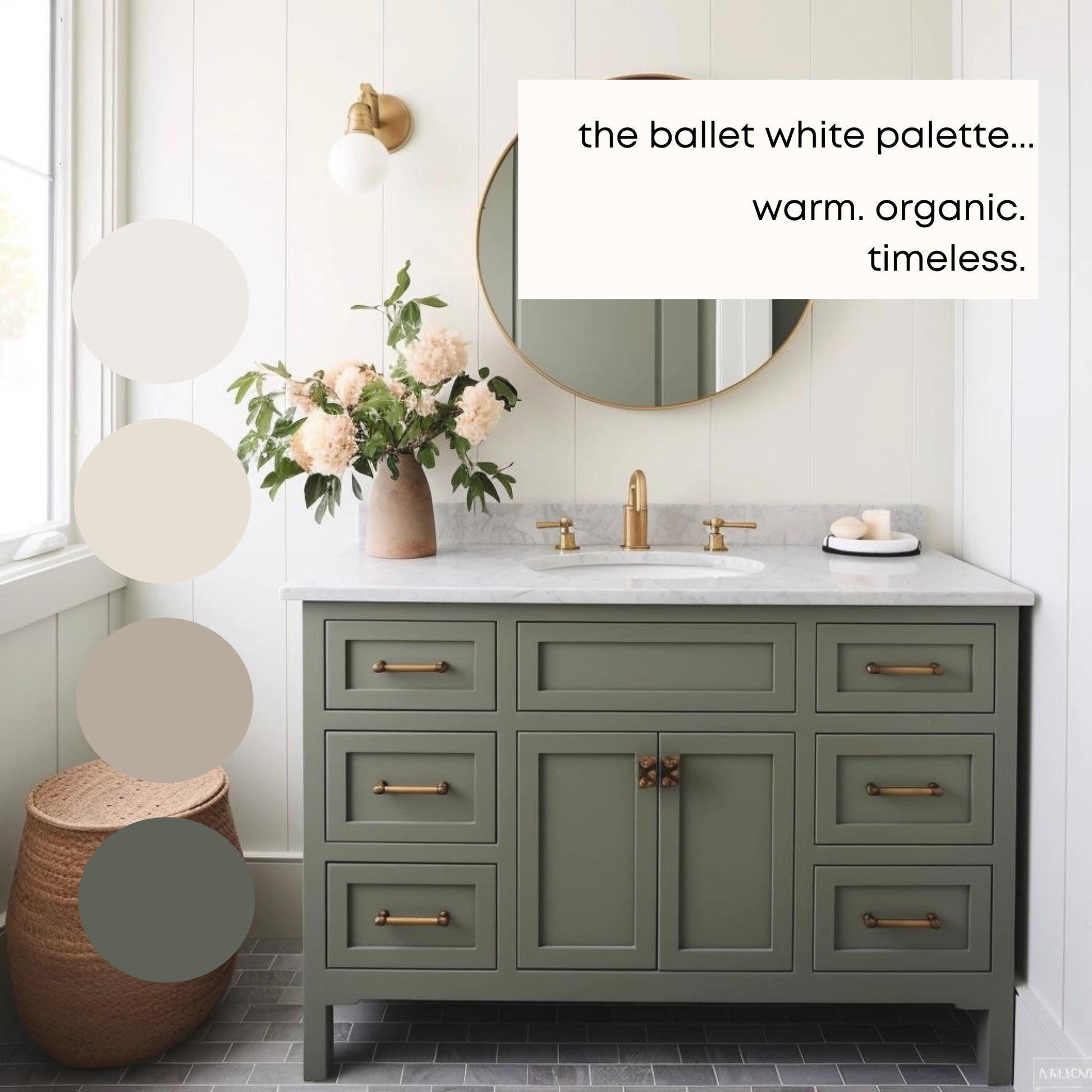 This Ballet White paint palette was professionally designed with Benjamin Moore paint colors, and features the best selling color Ballet White.