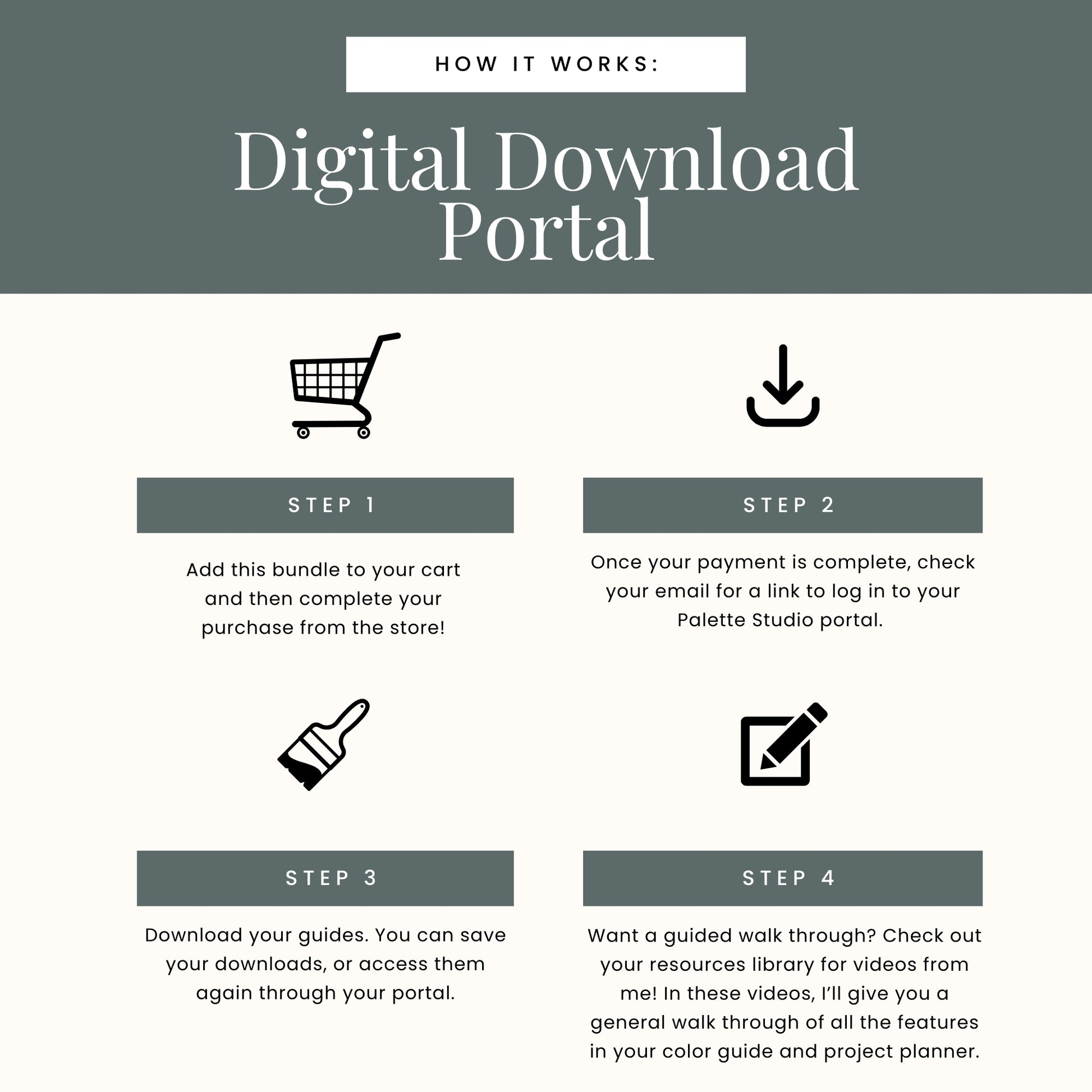 This product contains palettes that are accessed through DIGITAL DOWNLOAD, which means you will receive everything immediately. You will not receive anything in the mail.