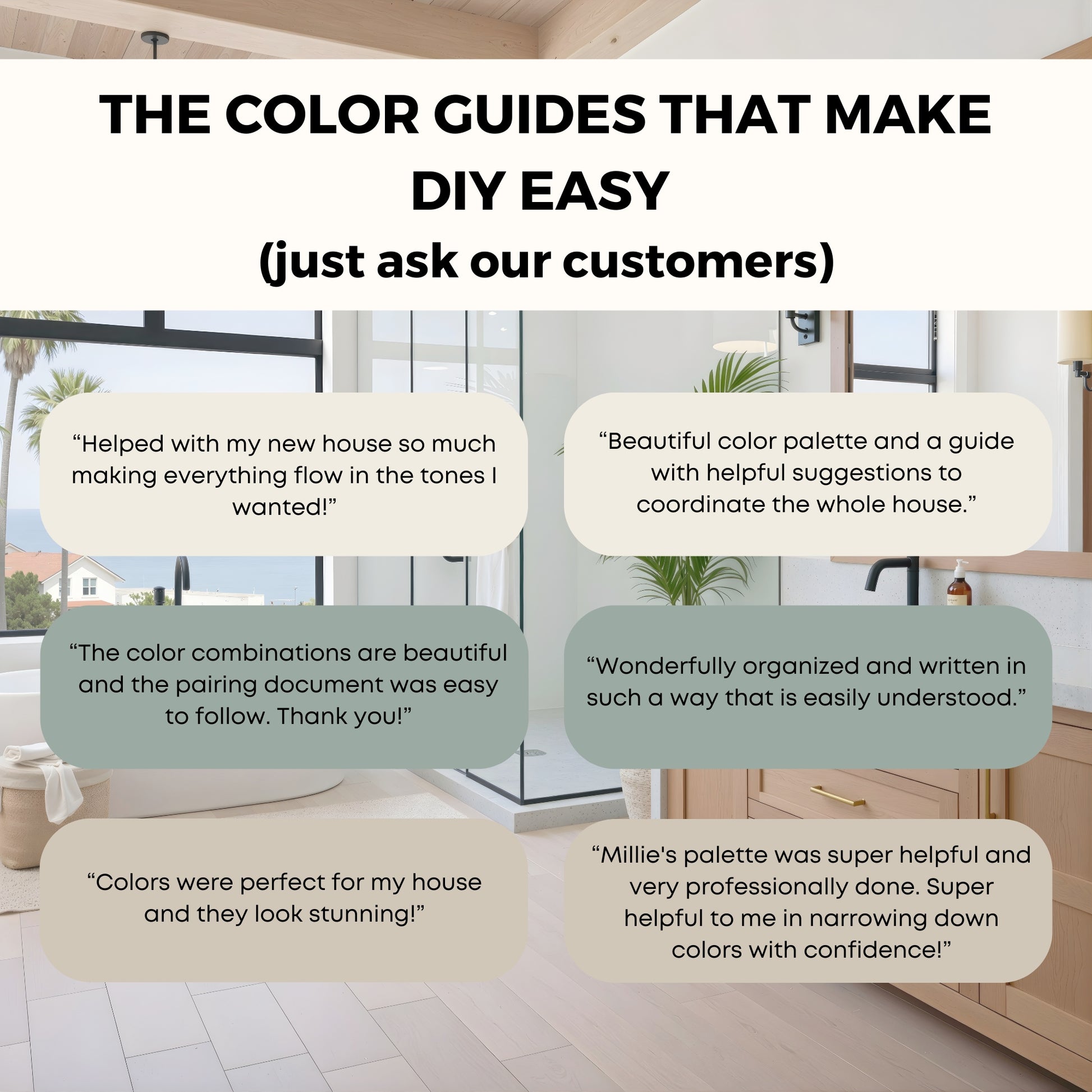 This exclusive Coastal Palette Studio Bundle includes five complete paint palettes, each featuring 9 thoughtfully coordinated colors. Each palette was professionally created with Sherwin Williams paint colors, and designed to work beautifully within the Coastal design style.
