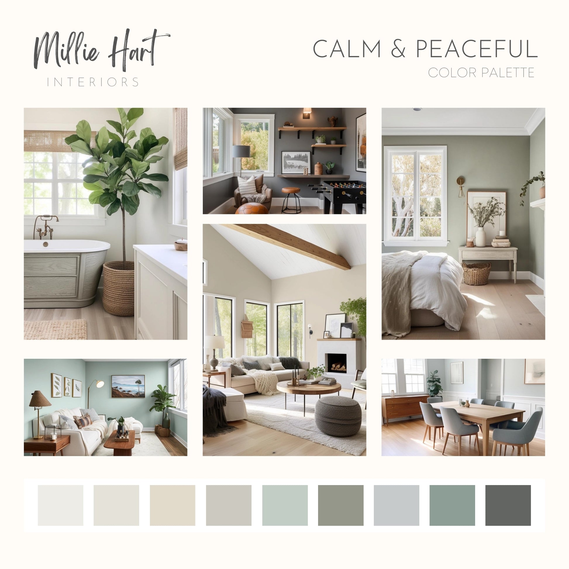 This Calm & Peaceful paint palette was professionally created with Benjamin Moore paint colors, and features the best-selling color Kendall Charcoal.
