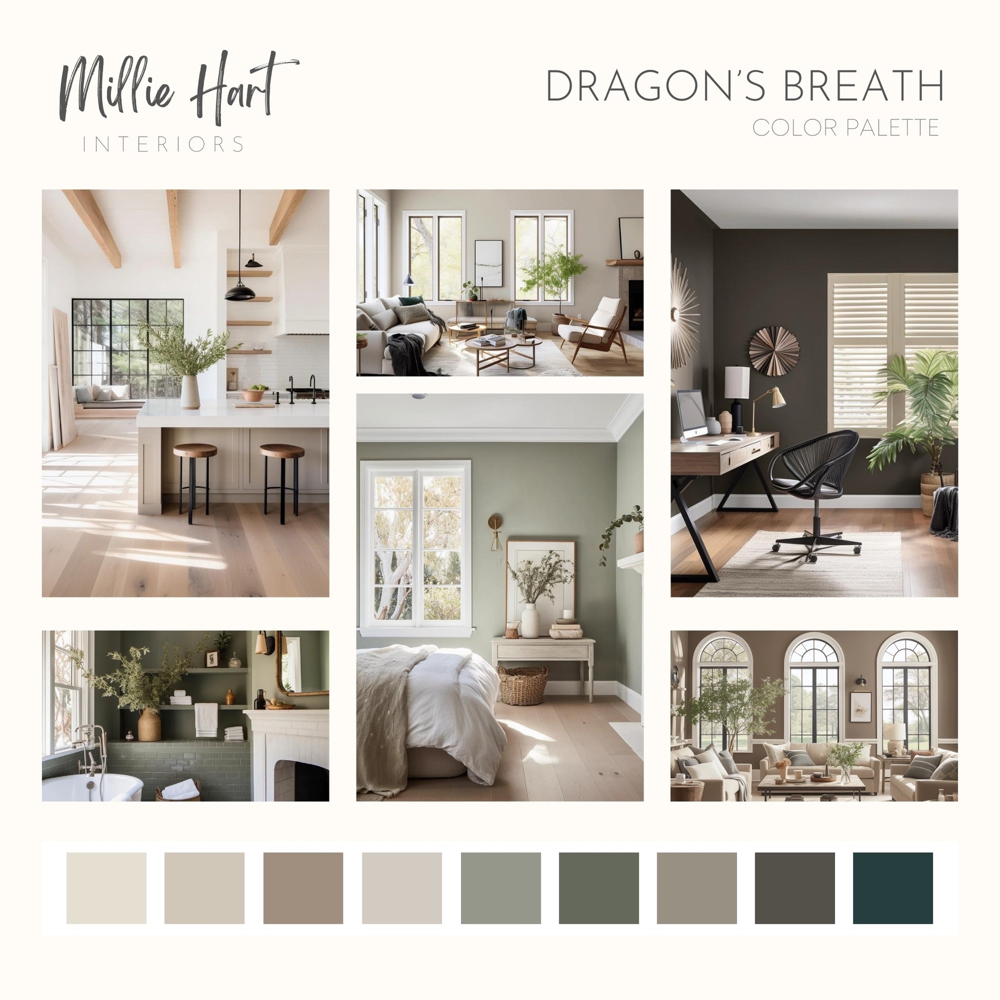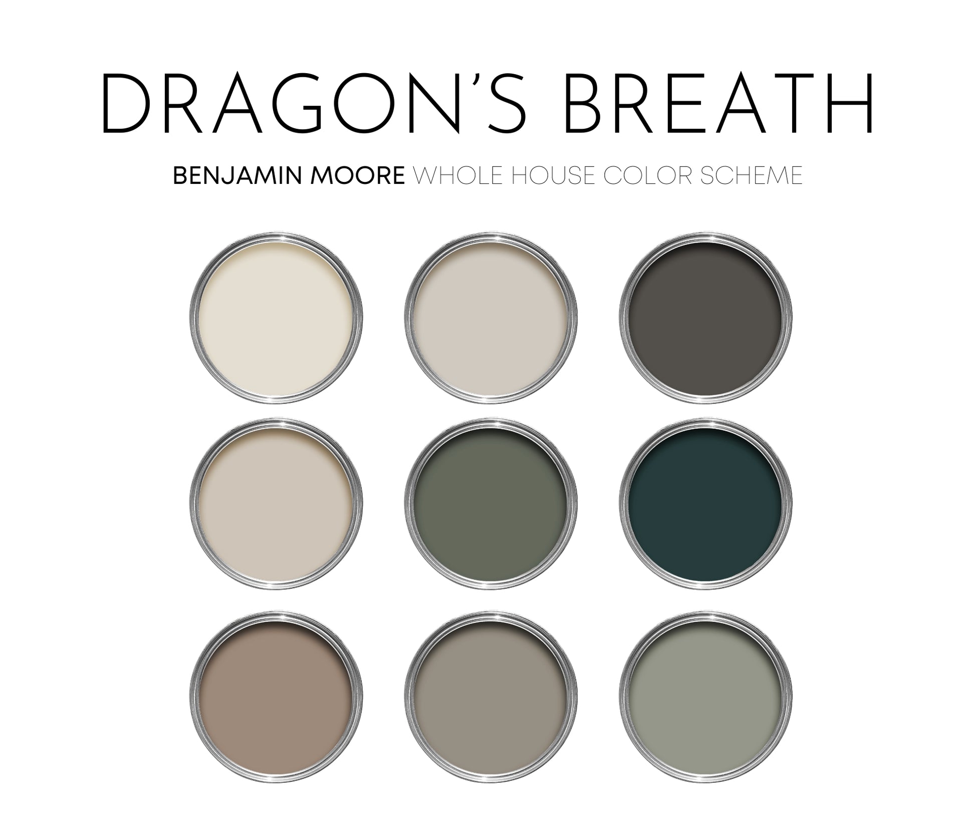 This Dragon's Breath paint palette was professionally designed with Benjamin Moore paint colors, and features the best selling color Evergreen Fog.