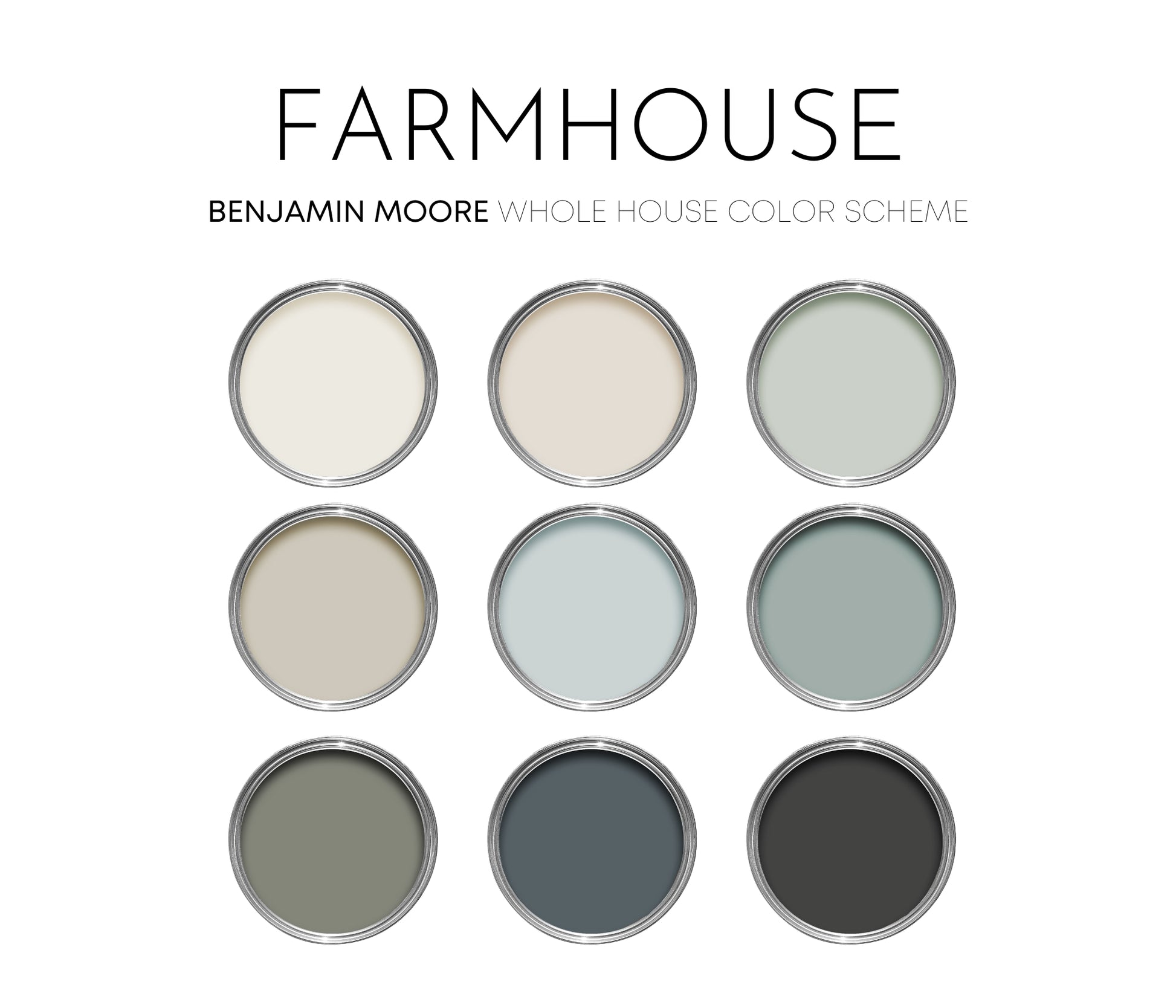 The Farmhouse paint palette was professionally created with Benjamin Moore paint colors, and features multiple best selling colors. It is perfect for creating a traditional or modern farmhouse feel.