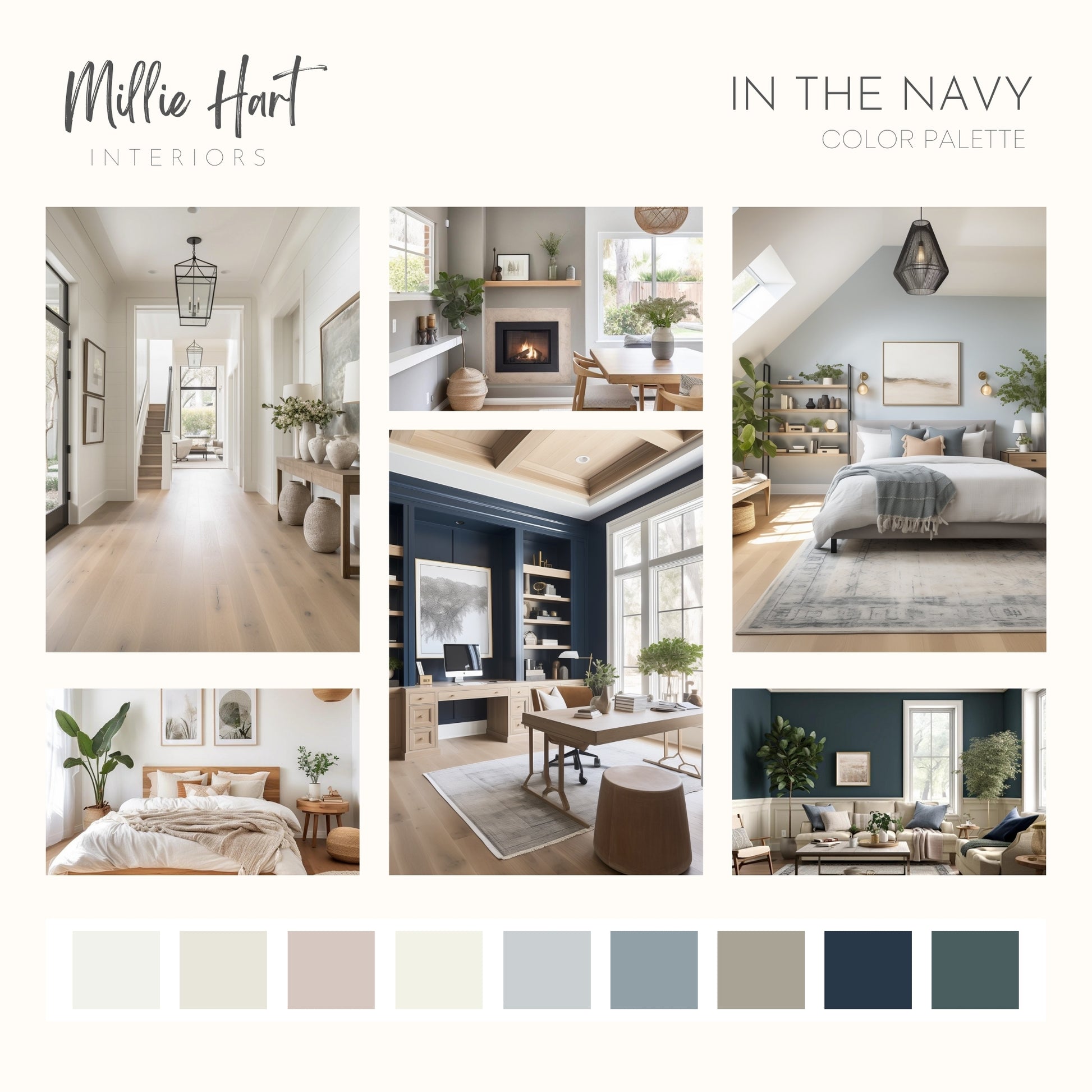 In the Navy Sherwin Williams Paint Palette - Modern Neutral Interior Paint Colors for Home, In the Navy Compliments, Whole House Color Palette, Sherwin Williams Pure White