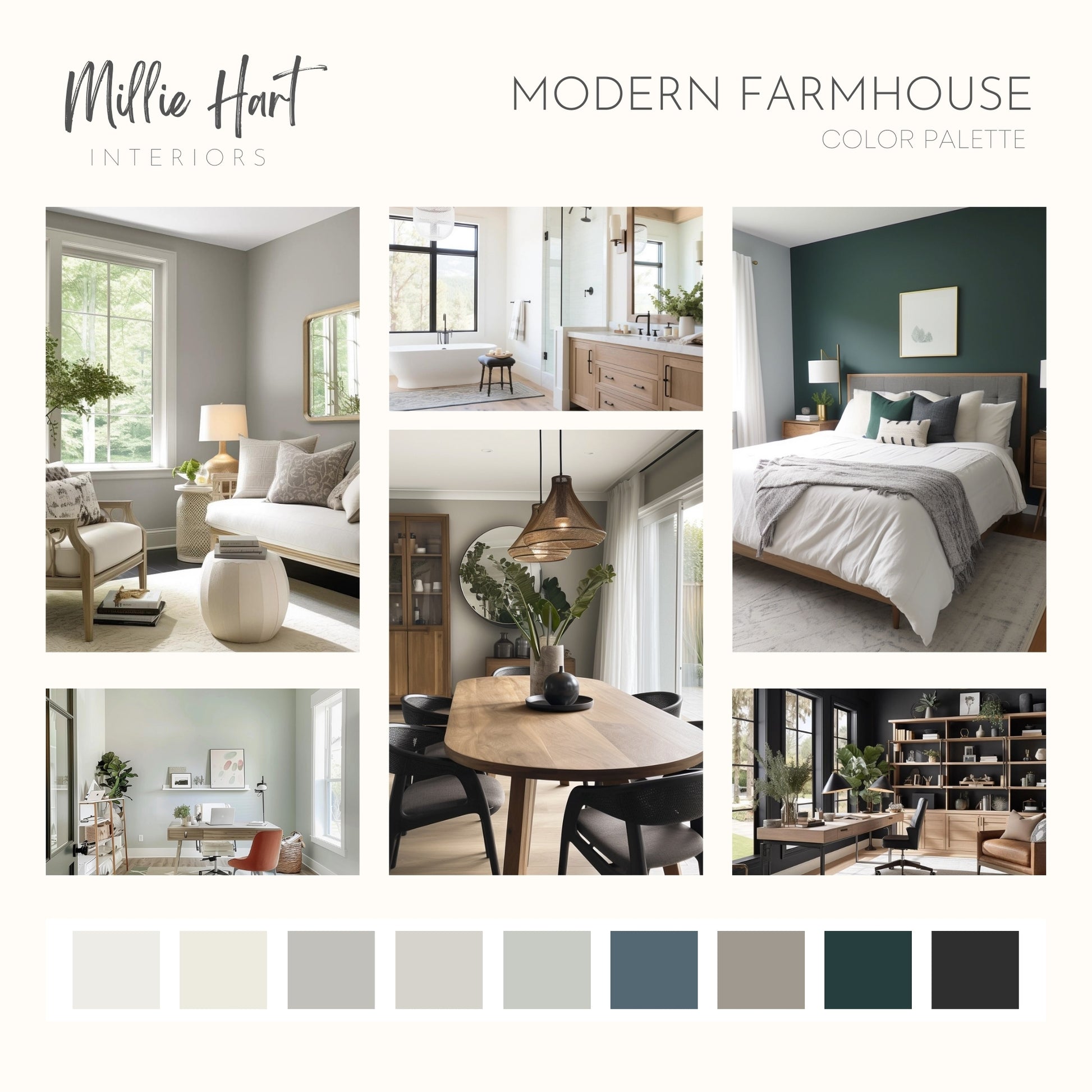 This Modern Farmhouse paint palette was professionally created with Benjamin Moore paint colors, and features multiple best selling colors.