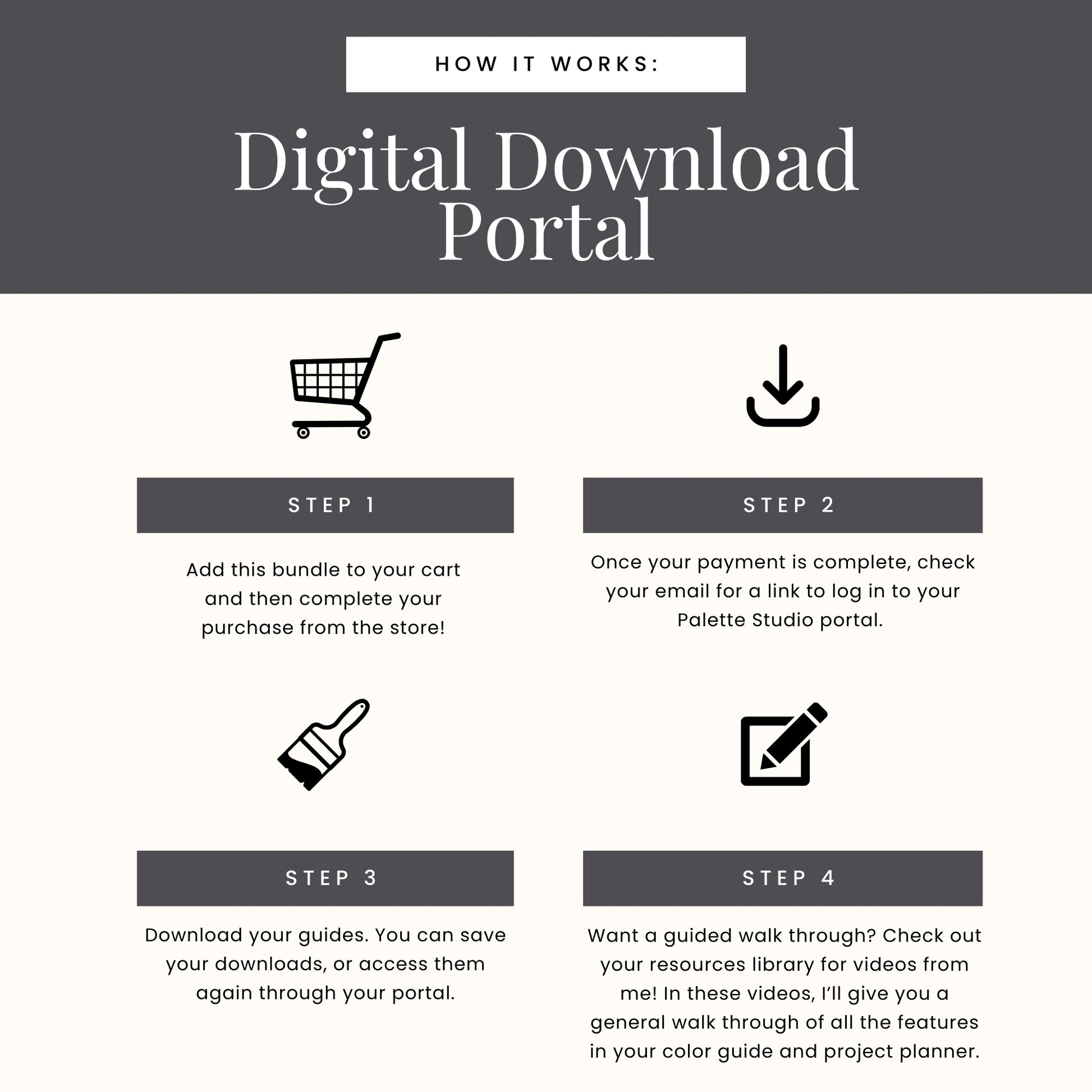 This product contains palettes that are accessed through DIGITAL DOWNLOAD, which means you will receive everything immediately. You will not receive anything in the mail.