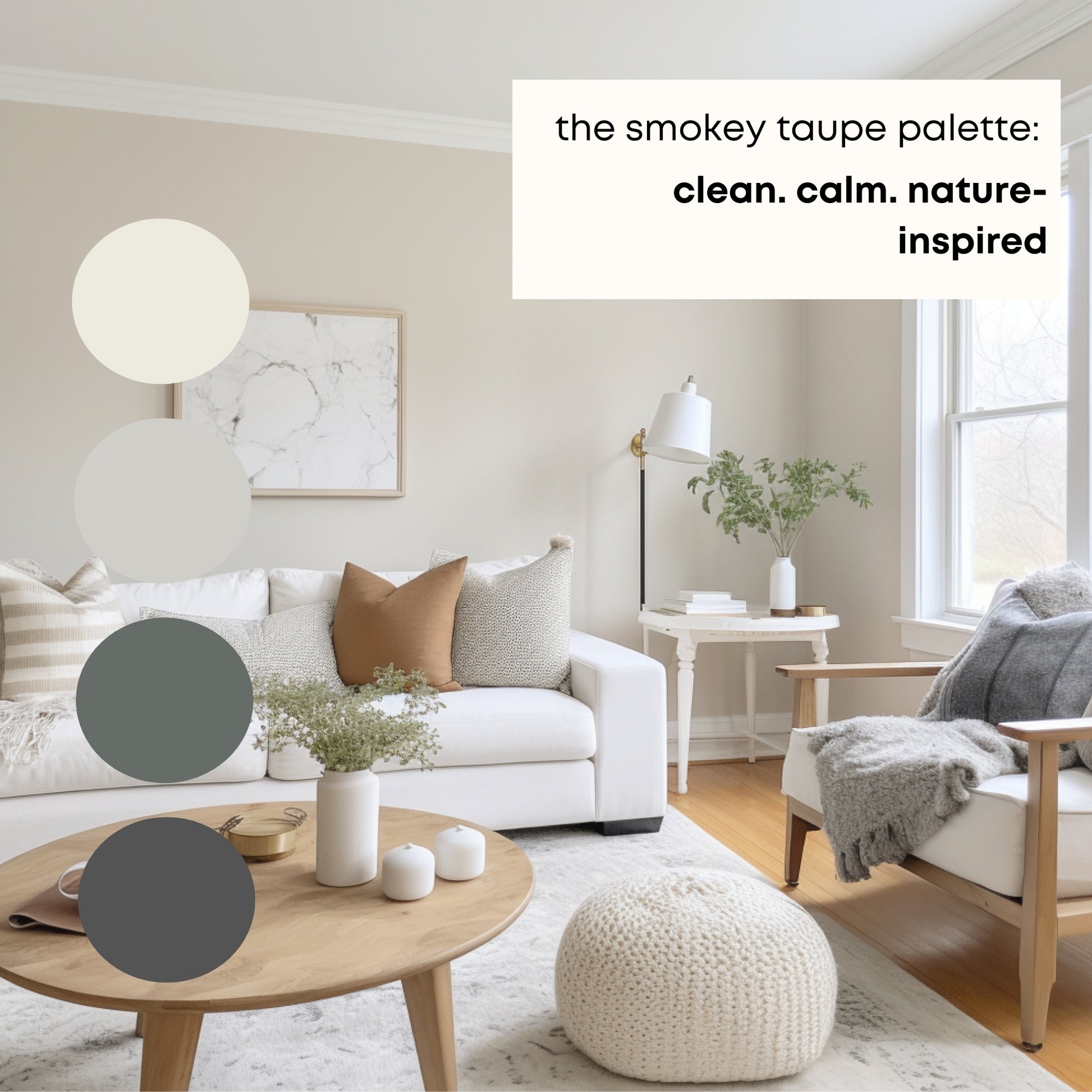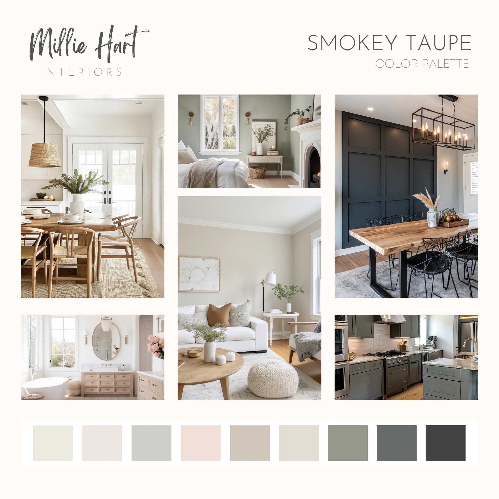 This Smokey Taupe paint palette was professionally designed with Benjamin Moore paint colors, and features the best selling color Smokey Taupe.