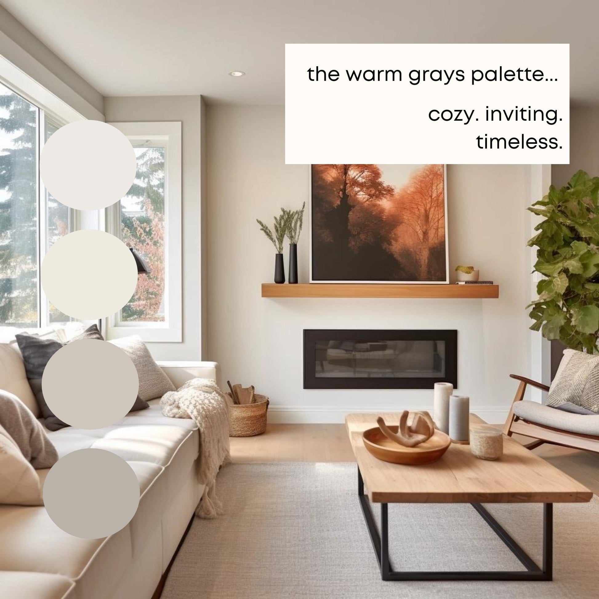 Warm Grays Benjamin Moore Paint Palette - Modern Neutral Interior Paint Colors for Home - Coordinating Interior Design Color Palette, Benjamin Moore Collingwood