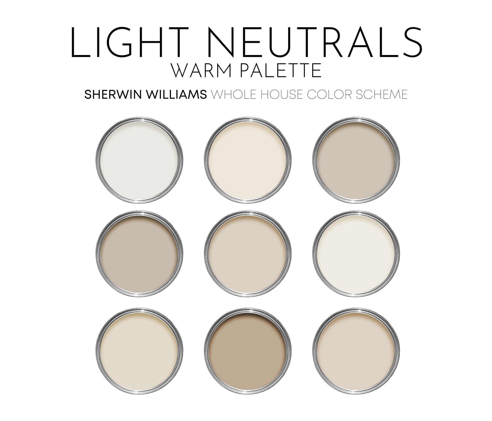 The Light Warm Neutrals paint palette was professionally designed with Sherwin Williams paint colors, and features multiple best-selling colors.